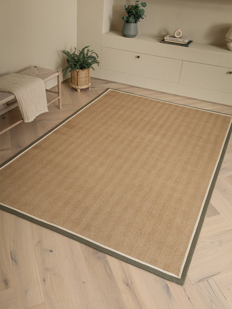 Bordo is power-loomed with jute in two versatile designs, a timeless herringbone and a modern boucle, each finished with a border. 100% jute - 4mm pile height