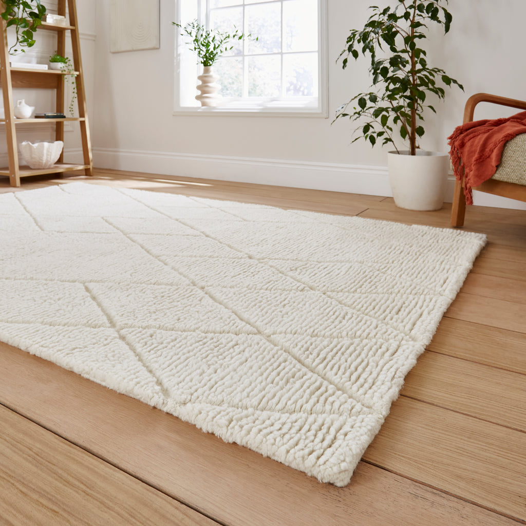 Neutral Berber style Rug. Made with 100% wool - Hand-tufted - 2.0 cm pile height.