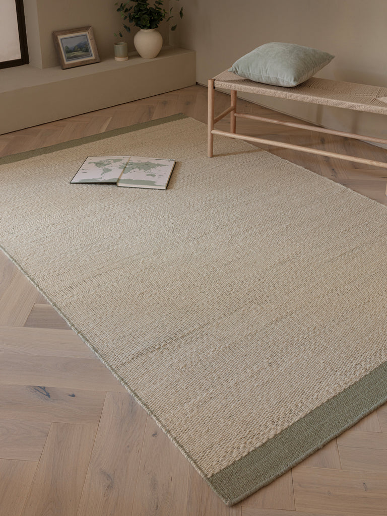 Lima combines hand-spun wool and cotton, twisted in an irregular low-profile weave, accentuated with a bold contrasting edge. - wool and cotton - 7mm pile height