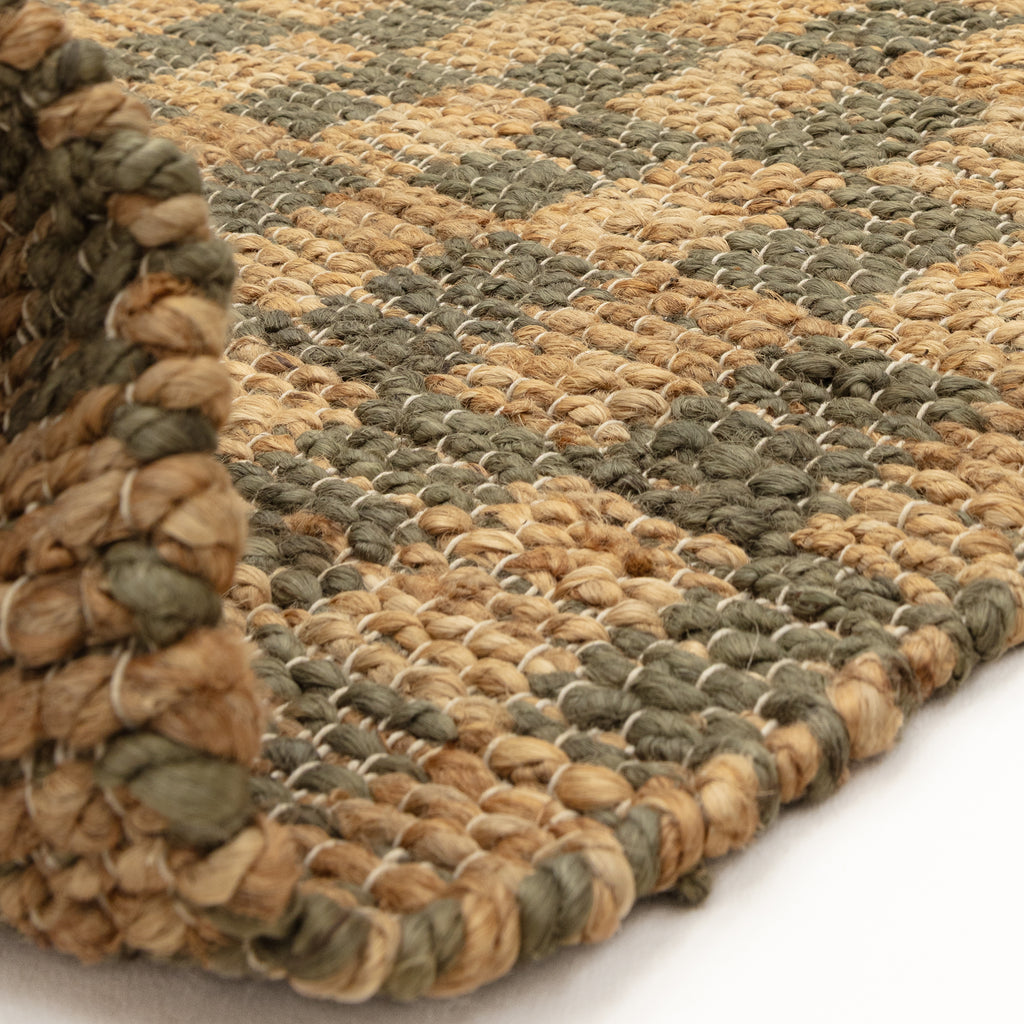 Naturi reimagines classic jute with a fresh design twist, featuring a checkerboard pattern, handwoven in a reversible style. -96% jute - 4 % cotton - 8mm pile height