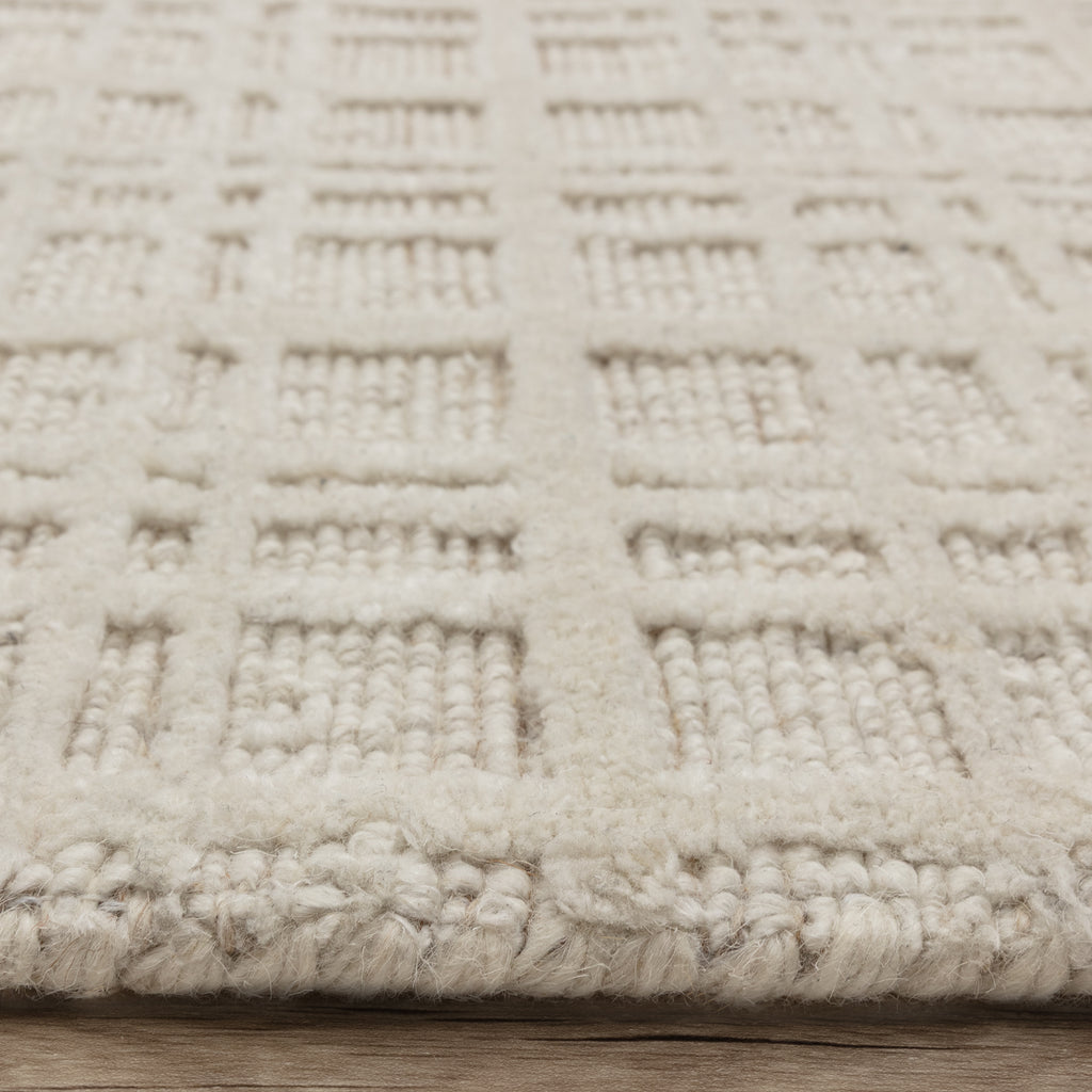 Thatch is woven by hand from undyed wool , accentuated with a low loop base and high cut pile that forms a multi-dimensional grid. - 72% wool 28% polyester - 5mm pile height