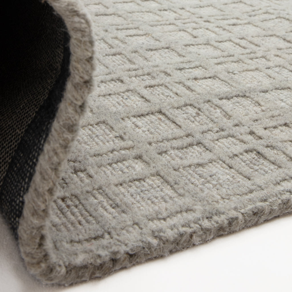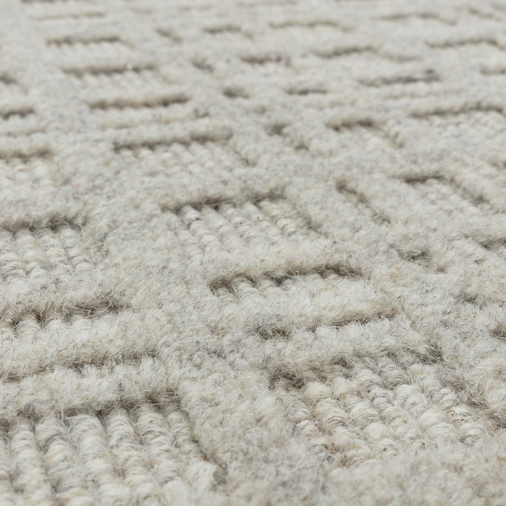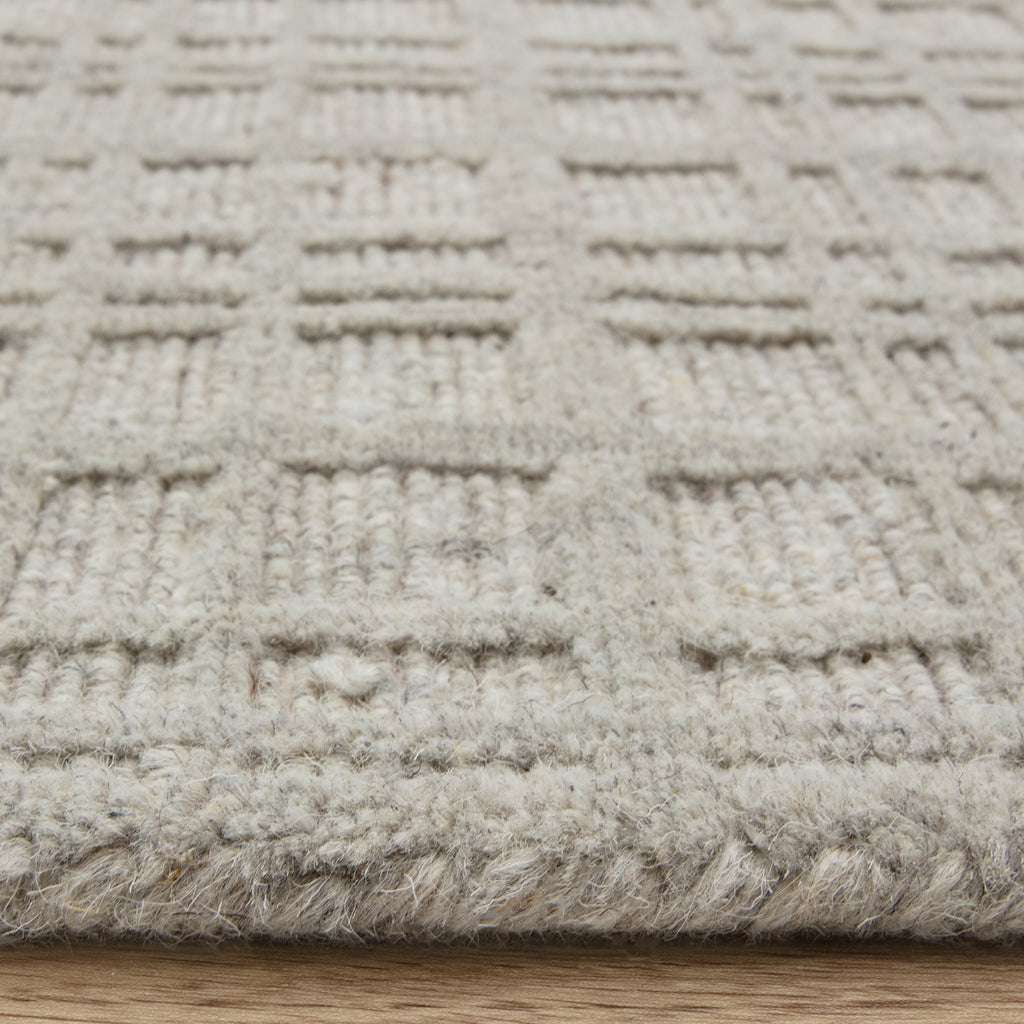Thatch is woven by hand from undyed wool , accentuated with a low loop base and high cut pile that forms a multi-dimensional grid. -  72% wool 28% polyester - 5mm pile height